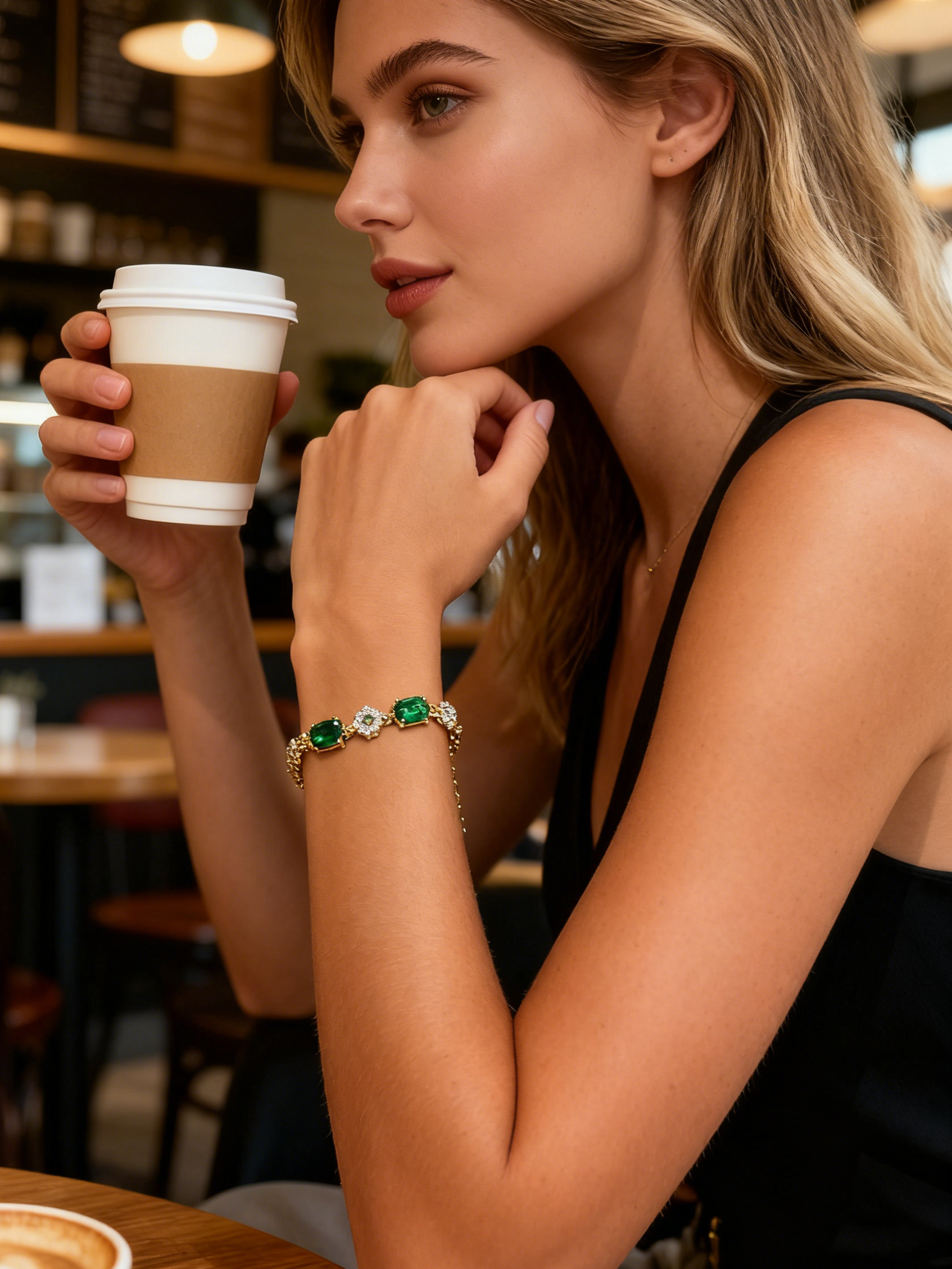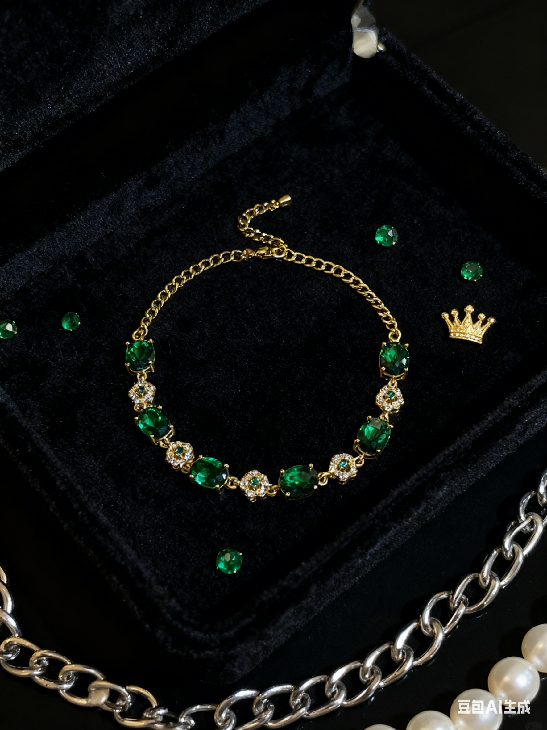 | Inspired by the legend of Lady Evelyn's private garden, a European aristocratic woman's garden renowned for its emerald-like evergreen wonderland, blending the elegance of the palace with the charm of nature. The abundant emerald gemstones resemble the rare evergreen plants in the garden, while the gold chains and diamond embellishments evoke the luxurious texture of the garden's iron fence. Emerald symbolizes **eternal elegance, hope for life, and nobility. In the context of jewelry, it has been an aesthetic symbol cherished by the Evelyn family for generations. It is not only an accessory that replicates vintage luxury, but also carries the beautiful meaning of "entering Evelyn's garden and letting the charm of emerald endow you with an elegant, eternal, and hopeful quality of life." May you, who wear it, always possess an elegant and noble temperament on your wrist, and the vibrant vitality of the garden wonderland. |