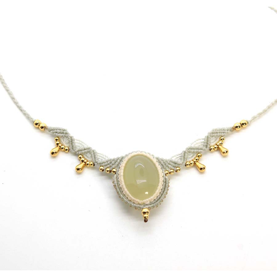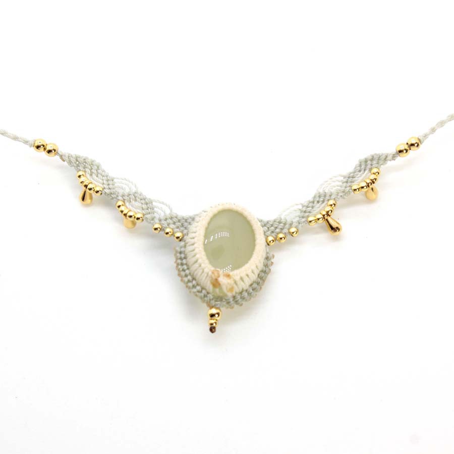 | The design inspiration for this necklace comes from the "Moonlight Spring," which, in elven legends, only appears deep within dense, secluded forests on the night of a full moon. The warm, lustrous light green crystal at the center of the necklace is the springhead that has gathered millennia of moonlight's essence, transparent and pure, as if it can reflect the wearer's inner tranquility. The light gray braided cord represents the dappled light and shadow cast by moonlight filtering through the forest branches and leaves, gently guarding this sacred spring. The golden charms and rice beads interspersed within are the elven flowers quietly blooming by the spring and the condensed moonlight dewdrops, adding a touch of vibrant luster to the tranquil night. In ancient elven legends, the water of the "Moonlight Spring" can cleanse fatigue and bestow inner peace and wisdom upon those who drink from it. Therefore, this necklace also carries the beautiful blessing of "tranquility and wisdom," hoping it can become a gentle radiance around your neck, guarding a pure sanctuary for your soul in this complex world, allowing you to always be accompanied by inner clarity and wisdom. |